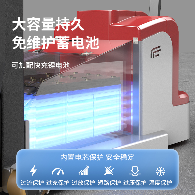 揚(yáng)子堆高車CPDB:精工鍛造有效載荷高,車身輕,強(qiáng)度高,穩(wěn)定性能好,一體鑄造油缸,載荷更大杜絕漏油。還有手動(dòng)緩降控制閥門,采用高性能免維護(hù)電池組