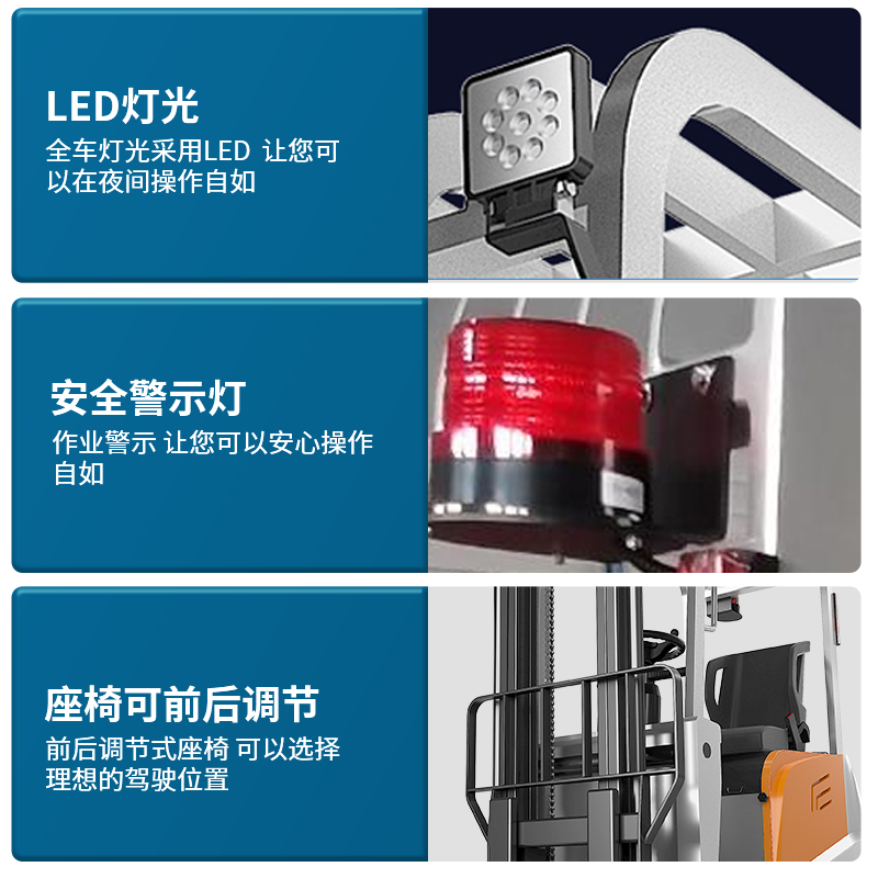 揚(yáng)子座駕式平衡重電動(dòng)叉車,360度旋轉(zhuǎn),回旋自如靈活性優(yōu),前后可調(diào)節(jié)座椅,全車燈光采用LED,讓你可以在夜間操作自如。