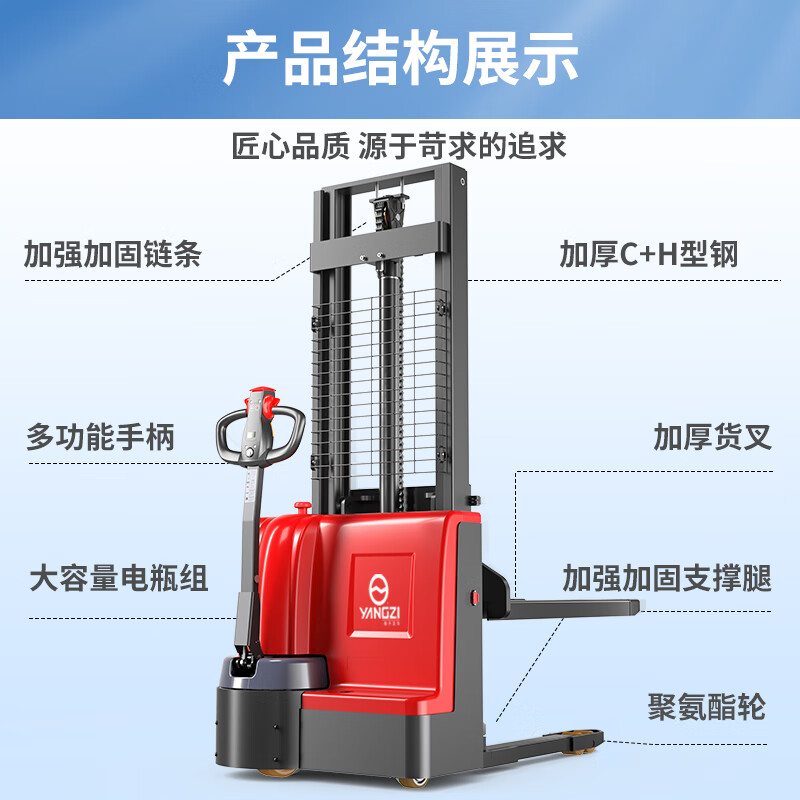 揚子電動堆高車升降叉車PSL1516-1.5噸升高1.6米,加厚C+H型鋼門架,優(yōu)質(zhì)加厚寶鋼,穩(wěn)固承重強